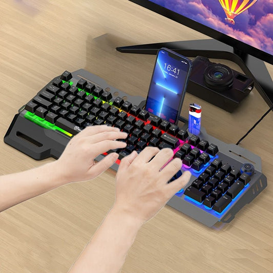 Clavier Gaming USB Filaire QWERTY Rétroéclairé Arc-en-Ciel avec Molette Volume (Neuf)