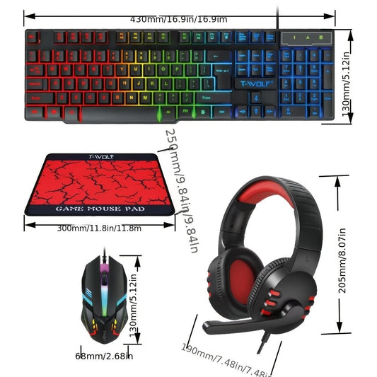 Combo Gaming T-WOLF TF800 Clavier QWERTY RGB Souris Casque Tapis (Neuf)