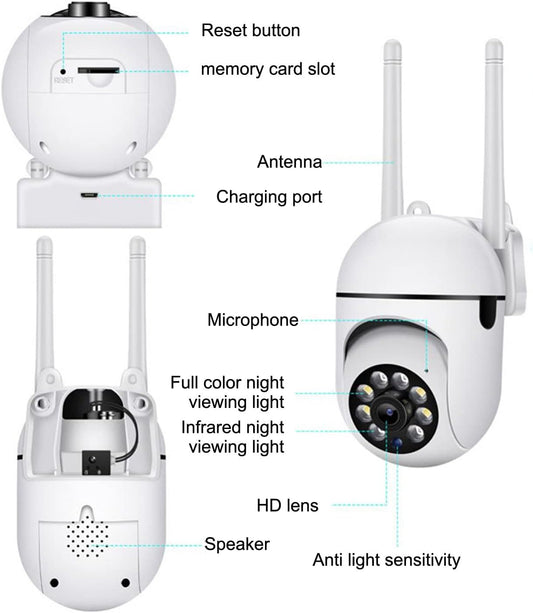 Caméra de Sécurité 1080p – Vision 360°, Vision Nocturne Couleur, Audio Bidirectionnel